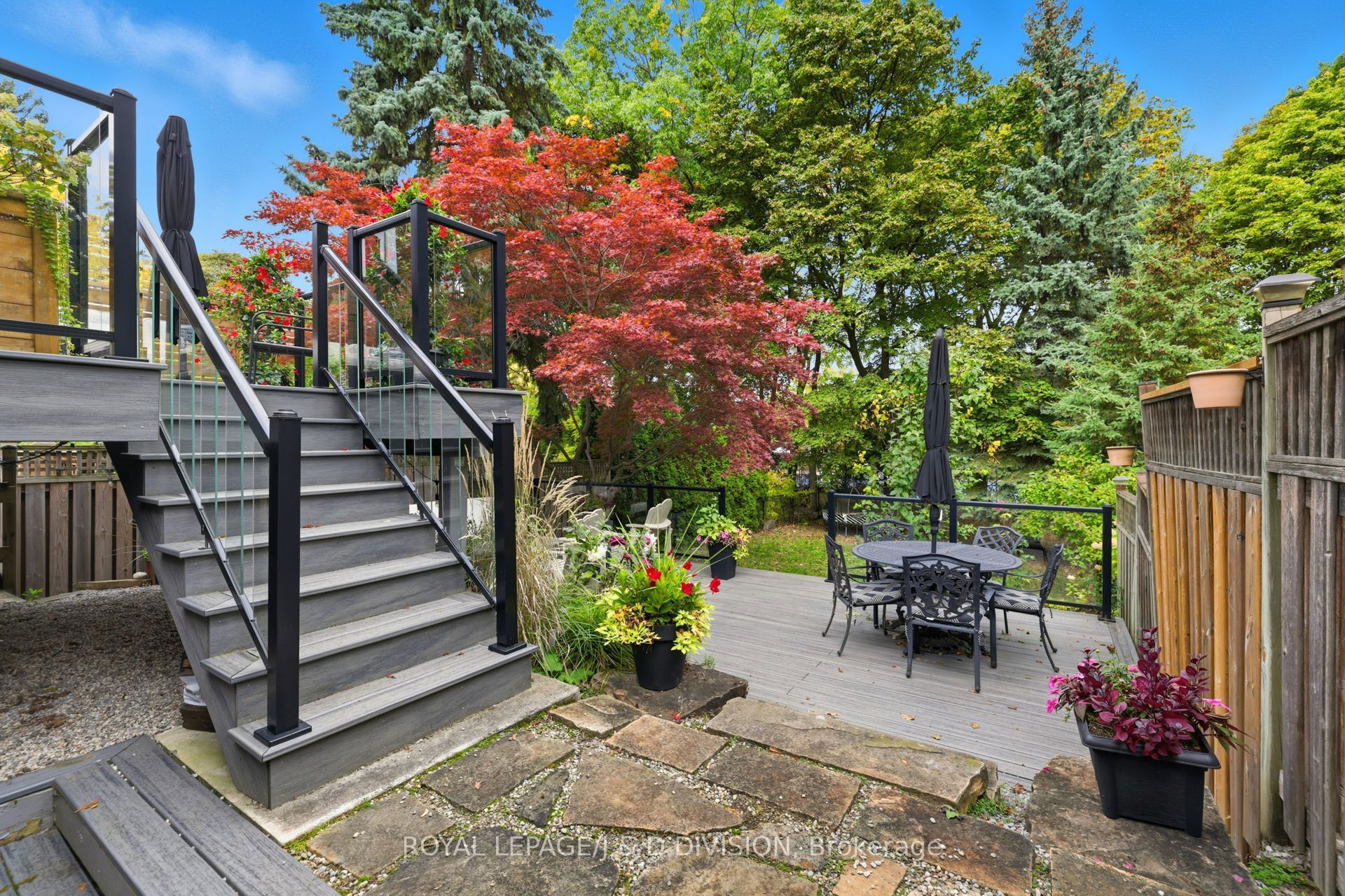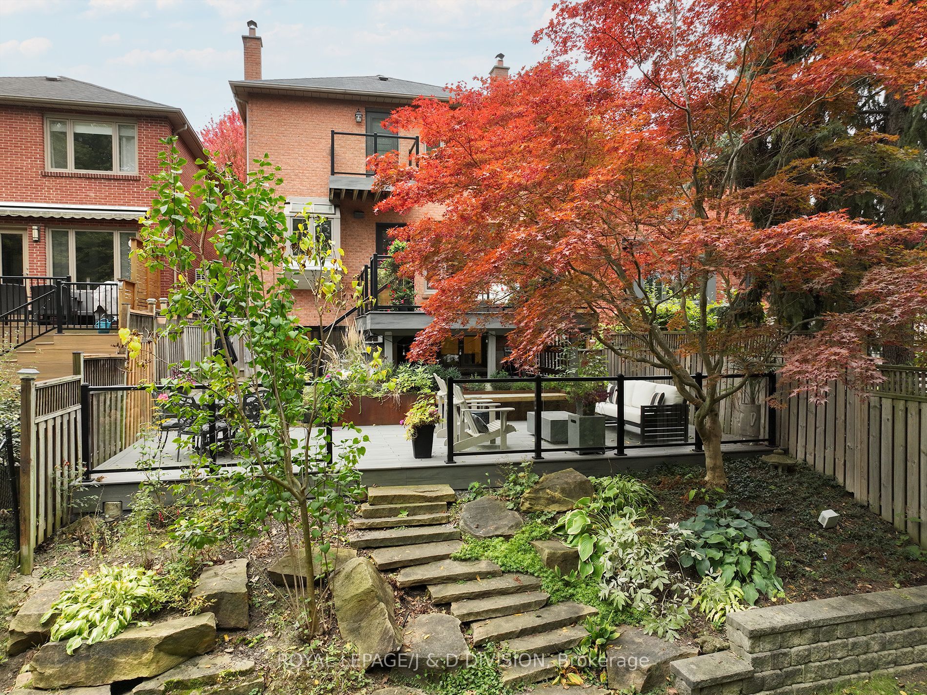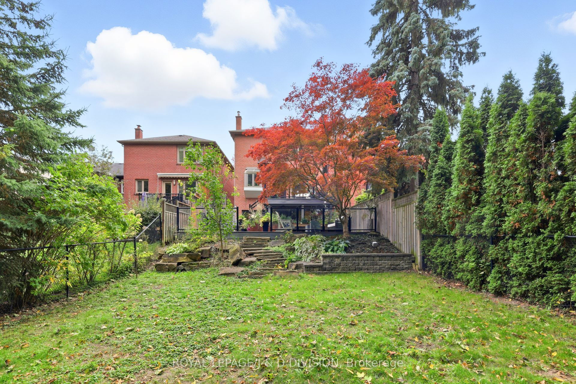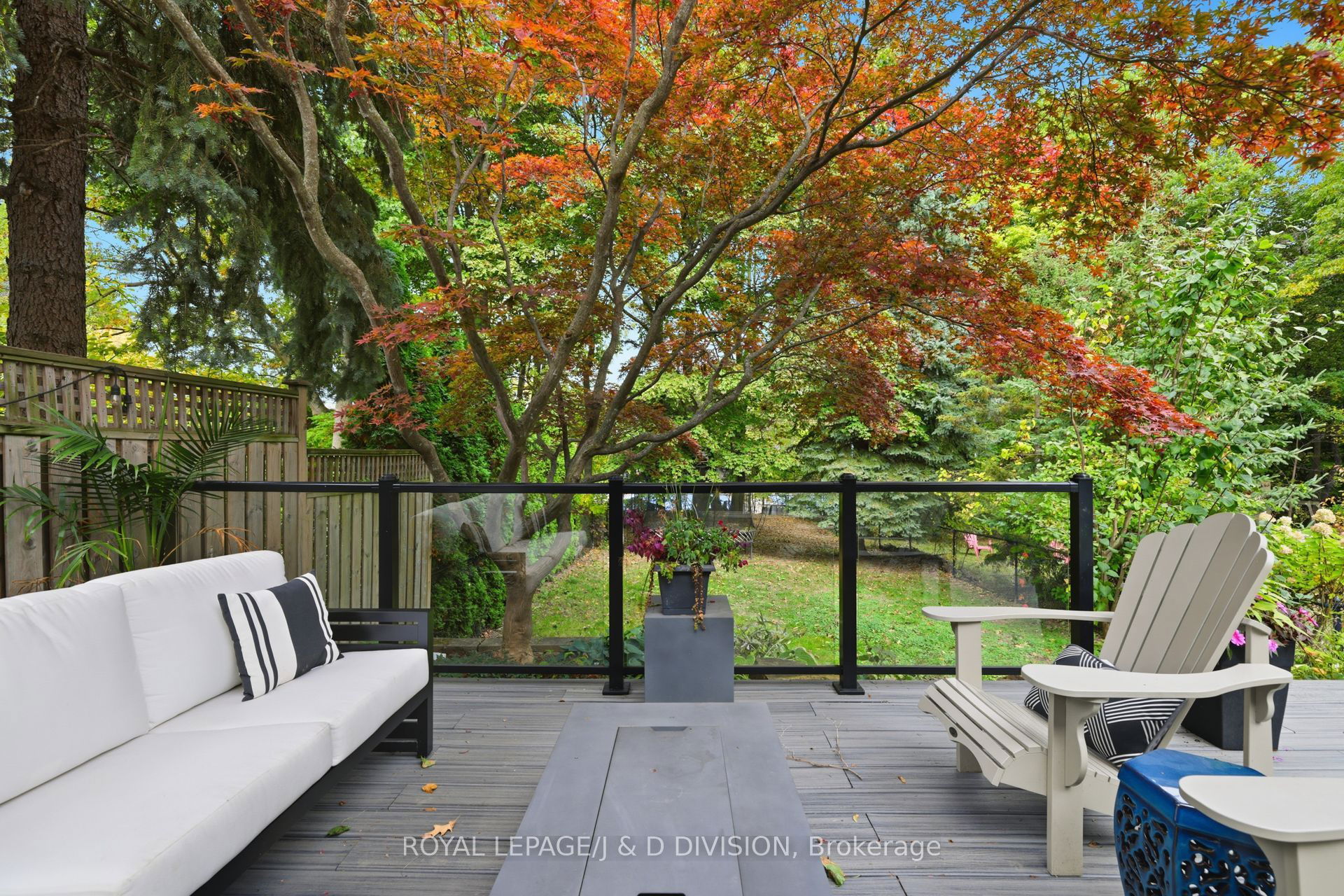In the heart of Lytton Park on a quiet, tree-lined street, this renovated 4-bed, 4-bath home sits on a rare 204-ft deep lot, offering exceptional privacy just steps from John Ross Robertson Public School. The living room features a bay window, custom shaker-style cabinetry, and a built-in gas fireplace – perfect for relaxed family evenings. The spacious dining room easily accommodates a large table and sideboard, with modern stained-glass windows and a statement chandelier adding a touch of sophistication. The chef’s kitchen includes a built-in oven, gas stove, Bosch dishwasher, double sinks under a garden window, and a large island with bar seating and wine fridge. Light stone counters, a herringbone backsplash, and elegant shaker cabinetry complete the timeless look. A breakfast area with walkout to the two-tiered deck and a powder room complete this level. The tiered deck overlooks a Japanese maple, and a deep, private yard bordered by mature trees – ideal for play, gardening, or a future pool. Glass railings and stone steps connect multiple outdoor entertaining areas, including a cozy fire-table patio. The property backs onto Havergal tennis courts for added greenery and privacy. On the second level, the serene primary suite features a picture window overlooking mature trees, a private balcony, custom walk-in closet, and spa-inspired ensuite with river stone tiles and rain shower. Three additional bedrooms share a modern 4-piece bath. A skylight above the elegant, curved staircase fills the home with natural light. The lower level offers a warm family room with gas fireplace, built-in cabinetry, a walkout to the yard, plus an office with a Murphy bed, 3-piece bath, laundry, and direct garage access with a private driveway for 2 cars. Steps to top schools, parks, and the shops of Lawrence Ave W, this home blends style, comfort, and family-friendly living in one of Toronto’s most coveted neighbourhoods.