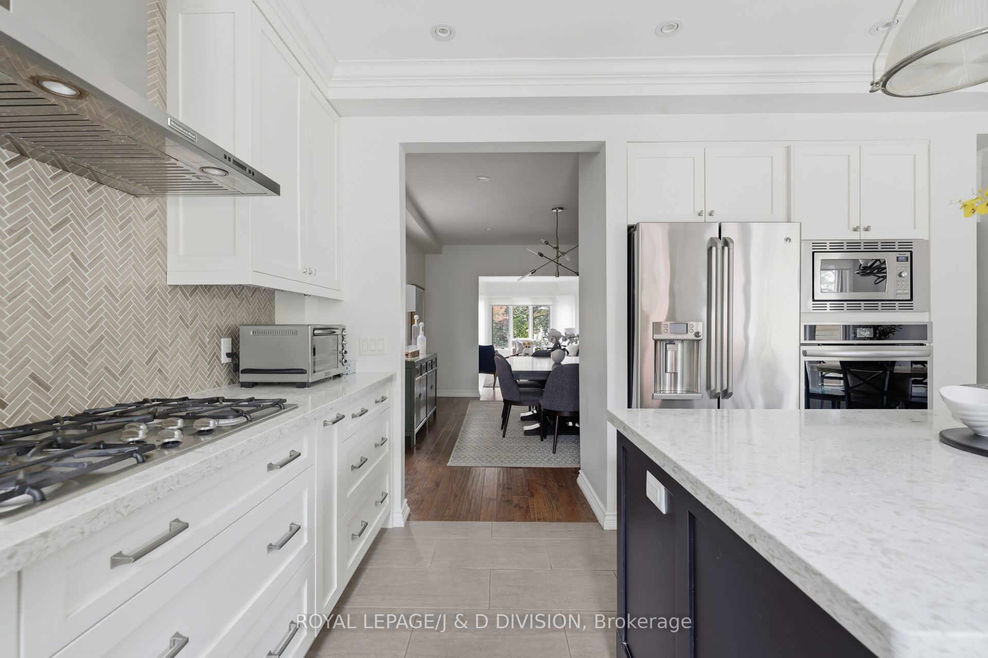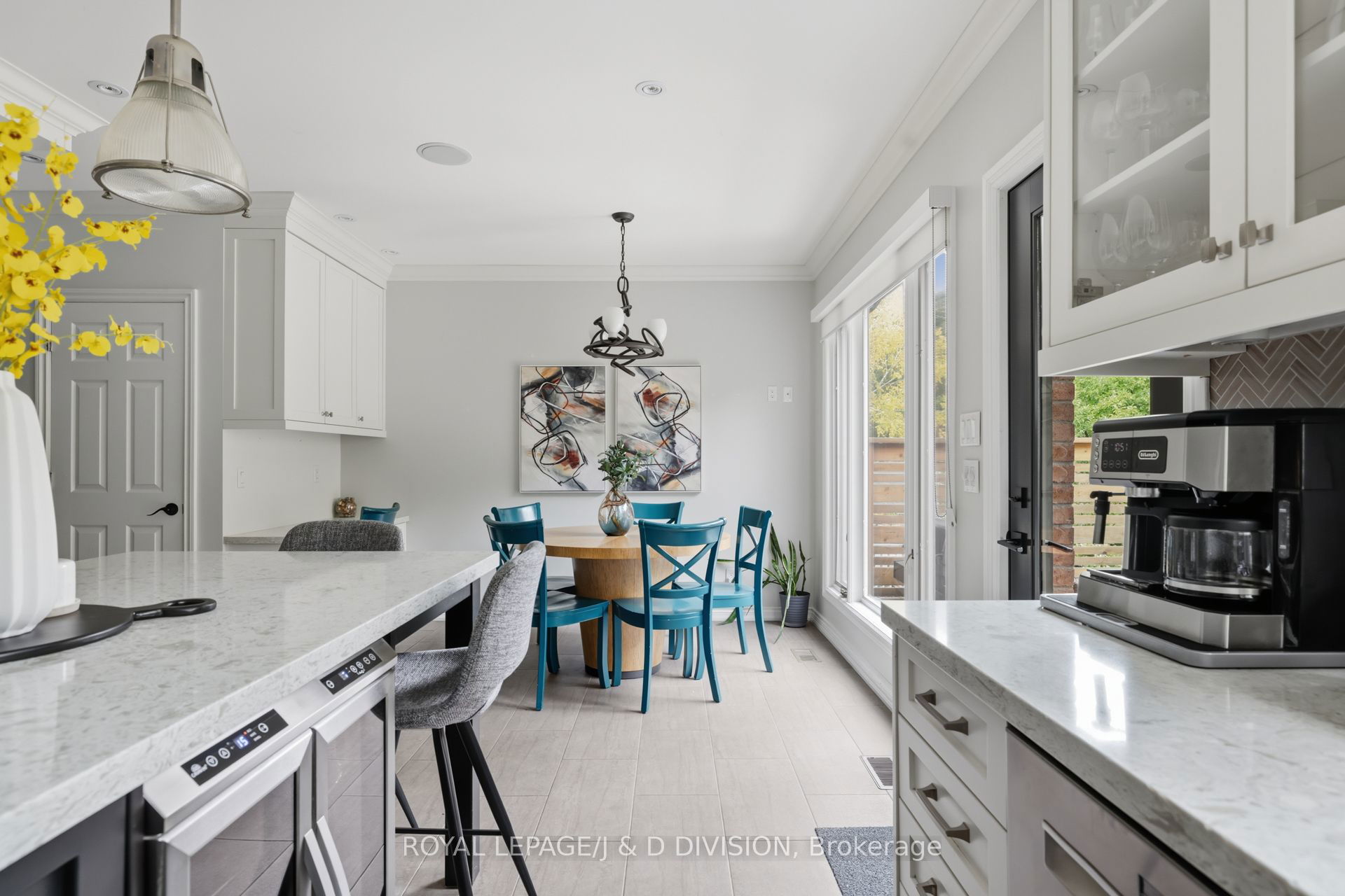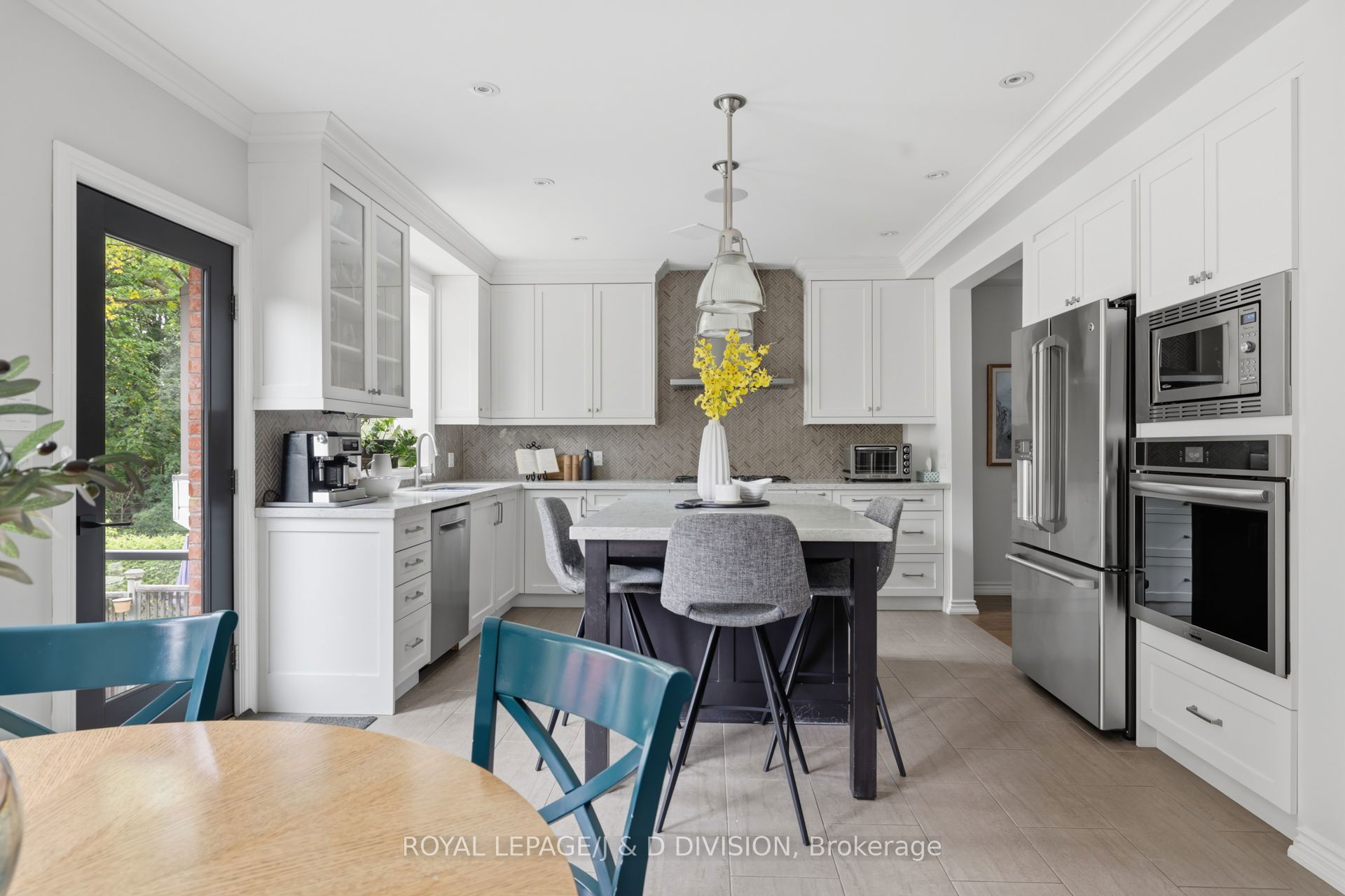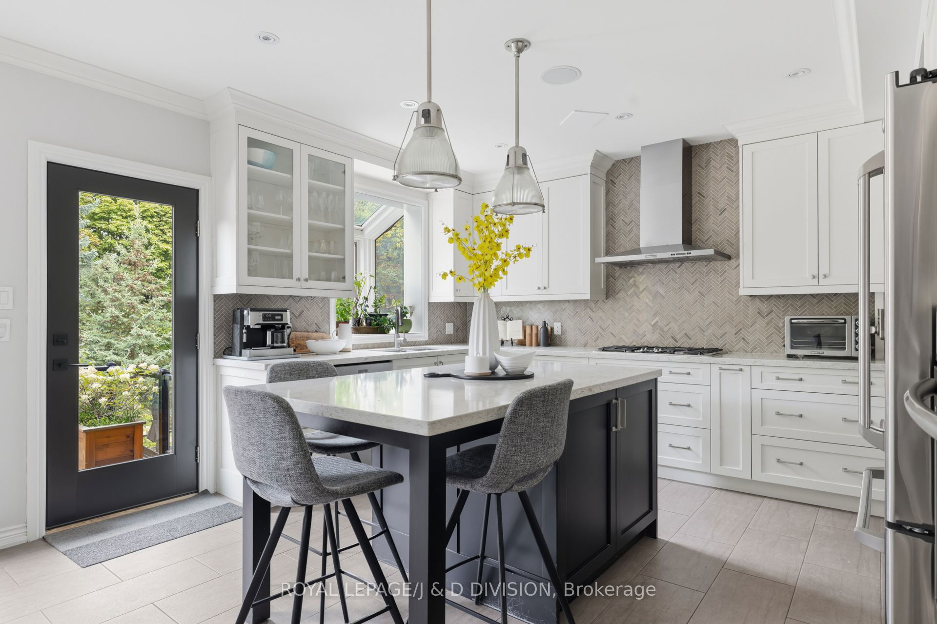 In the heart of Lytton Park on a quiet, tree-lined street, this renovated 4-bed, 4-bath home sits on a rare 204-ft deep lot, offering exceptional privacy just steps from John Ross Robertson Public School. The living room features a bay window, custom shaker-style cabinetry, and a built-in gas fireplace – perfect for relaxed family evenings. The spacious dining room easily accommodates a large table and sideboard, with modern stained-glass windows and a statement chandelier adding a touch of sophistication. The chef’s kitchen includes a built-in oven, gas stove, Bosch dishwasher, double sinks under a garden window, and a large island with bar seating and wine fridge. Light stone counters, a herringbone backsplash, and elegant shaker cabinetry complete the timeless look. A breakfast area with walkout to the two-tiered deck and a powder room complete this level. The tiered deck overlooks a Japanese maple, and a deep, private yard bordered by mature trees – ideal for play, gardening, or a future pool. Glass railings and stone steps connect multiple outdoor entertaining areas, including a cozy fire-table patio. The property backs onto Havergal tennis courts for added greenery and privacy. On the second level, the serene primary suite features a picture window overlooking mature trees, a private balcony, custom walk-in closet, and spa-inspired ensuite with river stone tiles and rain shower. Three additional bedrooms share a modern 4-piece bath. A skylight above the elegant, curved staircase fills the home with natural light. The lower level offers a warm family room with gas fireplace, built-in cabinetry, a walkout to the yard, plus an office with a Murphy bed, 3-piece bath, laundry, and direct garage access with a private driveway for 2 cars. Steps to top schools, parks, and the shops of Lawrence Ave W, this home blends style, comfort, and family-friendly living in one of Toronto’s most coveted neighbourhoods.