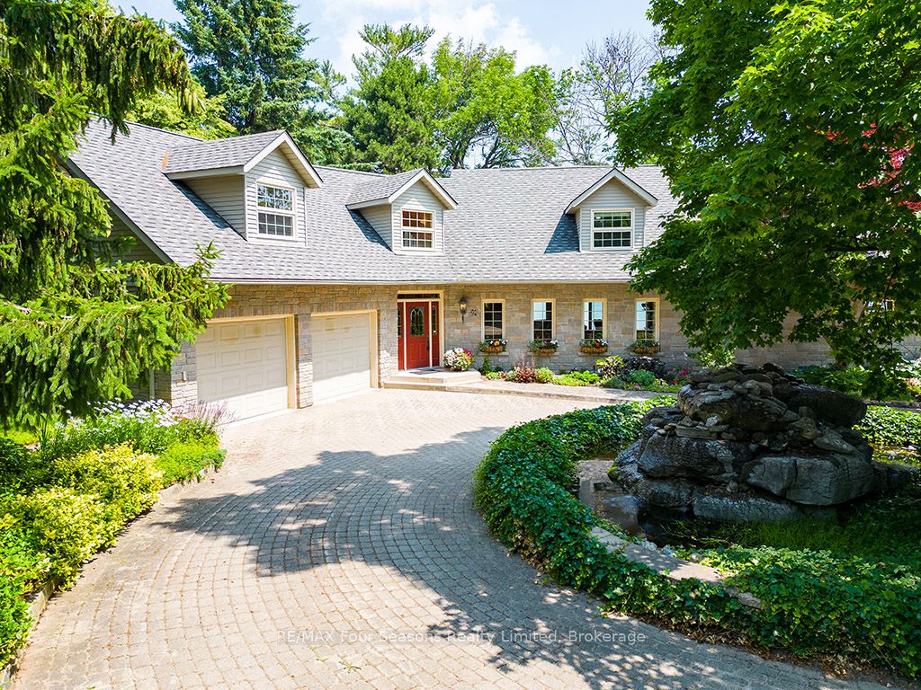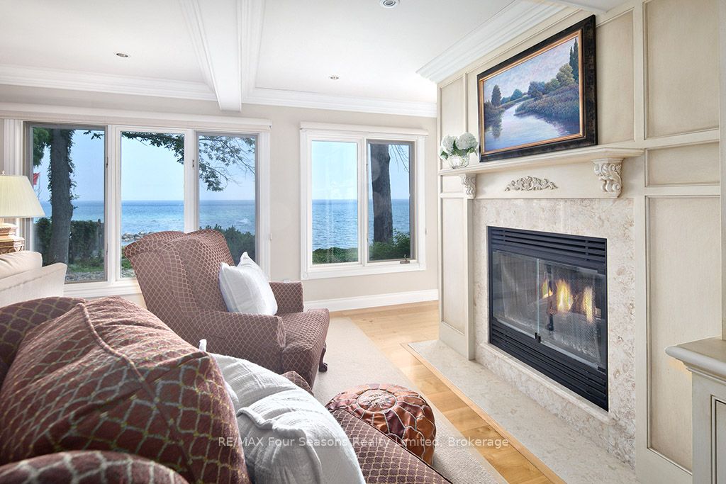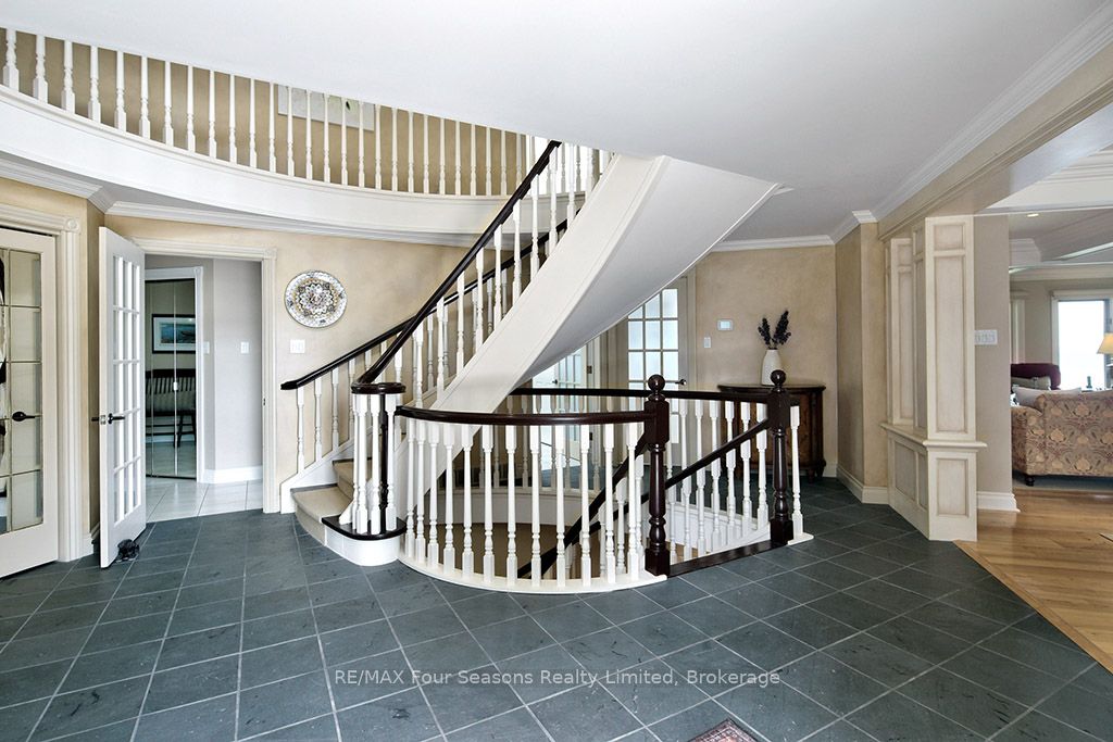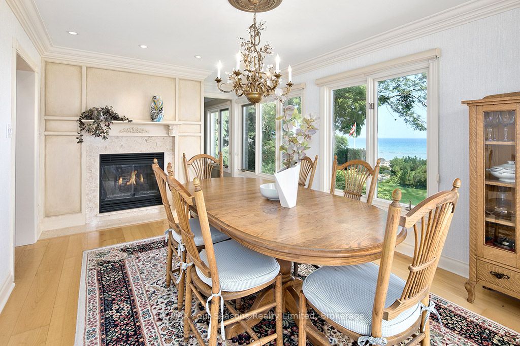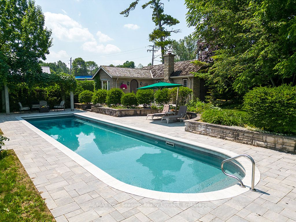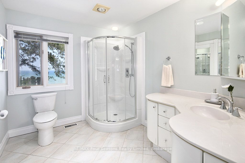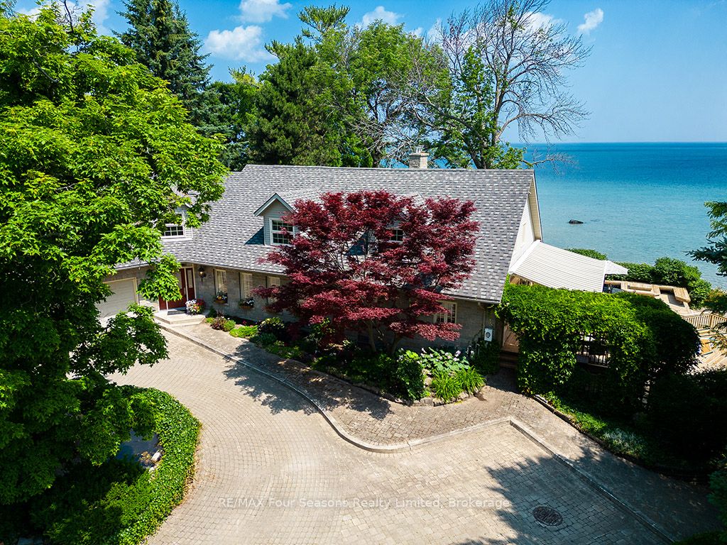 335 feet of exquisite waterfront nestled on the shores of Georgian Bay! With potential for a family compound this 4+1 bed, 4-bath home spans over 4,000 sq. ft. of beautifully appointed living space, with panoramic lake views and a resort-like setting. Arrive via a private gated circular drive and step into a secluded, park-like oasis featuring manicured grounds, a heated in-ground saltwater pool, with a stone English Potting Shed waiting for your ideas, a waters-edge gazebo, flagstone patios and tiered decks that lead you to the shoreline. Inside, Swedish Pine floors set a warm, elegant tone throughout. The main floor features a stunning living room with coffered ceilings, 2-sided gas fireplace, built-ins, and picture windows that perfectly frame the vistas. The layout flows from the living room into a formal dining room – maximizing light and views. The chef’s kitchen is a culinary dream, anchored by a 6-burner Viking gas range, granite countertops, a large island with prep sink, high-end appliances, and generous custom cabinetry. Upstairs, the light-filled family room with vaulted ceilings and skylights offers an inviting retreat, complemented by a cozy gas fireplace. The luxurious primary suite includes a spa-like ensuite and serene lake views, while three additional bedrooms with views of the water and two full baths accommodate family and guests in comfort. The expansive lower-level games and recreation room offers endless entertainment potential and two Murphy beds for overflow guests. New roof and skylights, both furnaces, pool and decking, windows, and renovated baths. Located just minutes to downtown shops and restaurants, and a short drive to Blue Mountain, the private ski clubs, Bruce Trail hiking, Cross Country trails, top golf courses, cycling routes, and more – making it a true 4-season playground for outdoor enthusiasts. A stunning blend of elegance, comfort, and recreation – this Georgian Bay waterfront gem is your ultimate lakeside sanctuary.