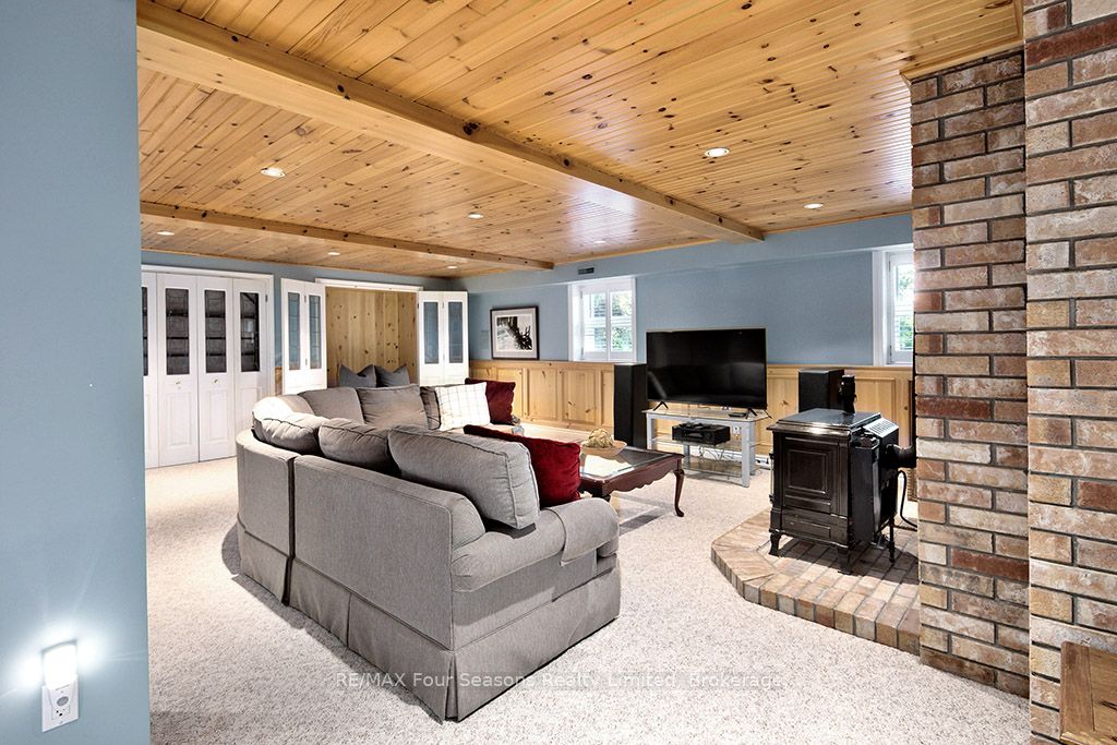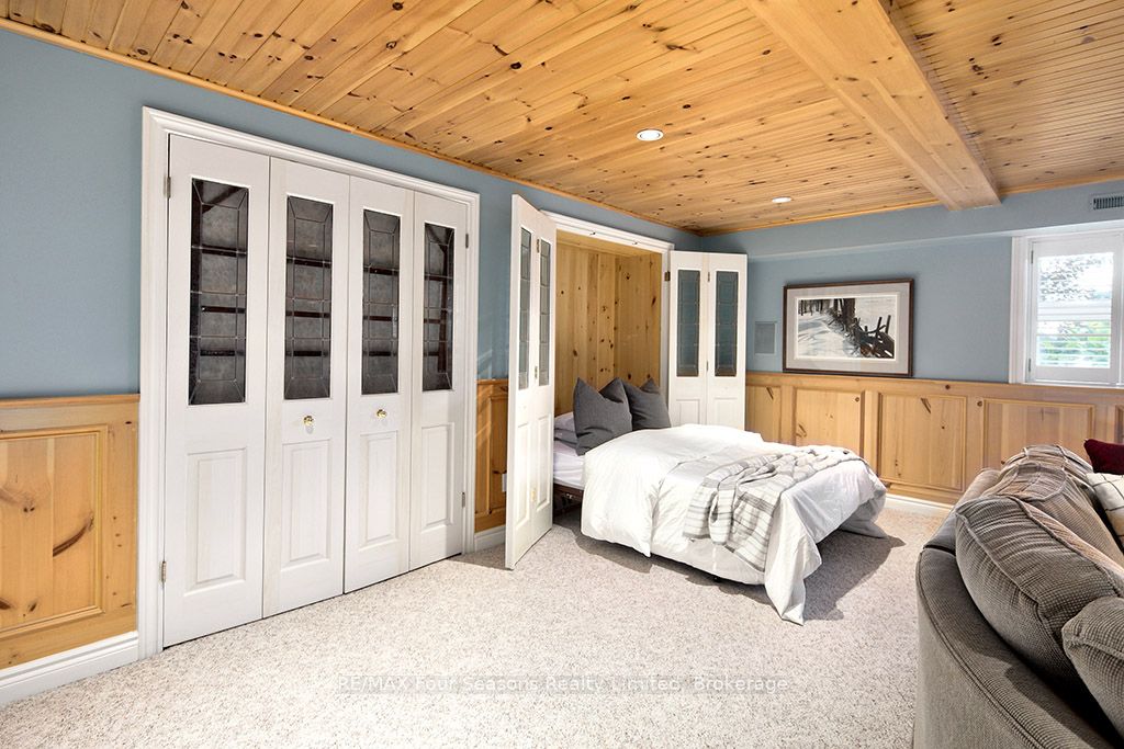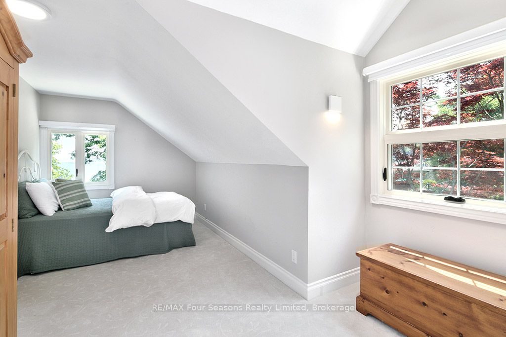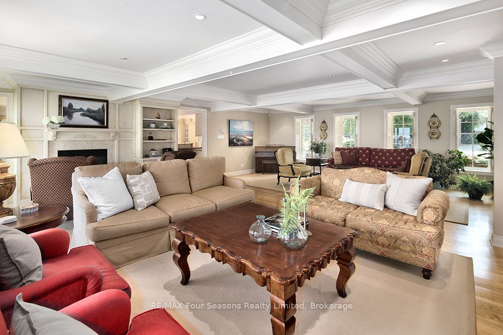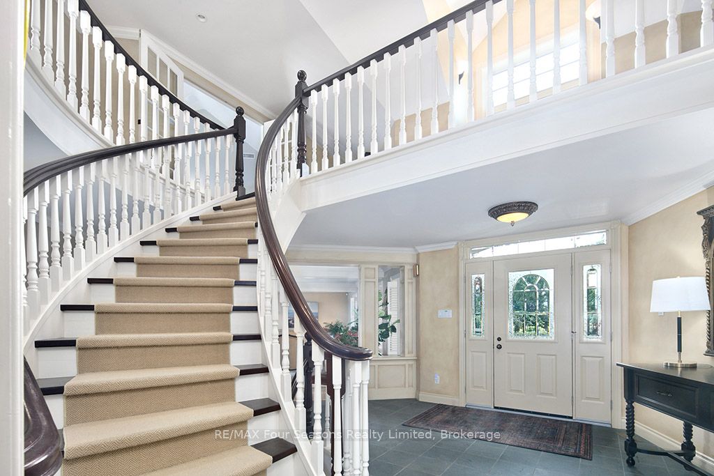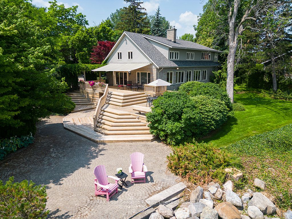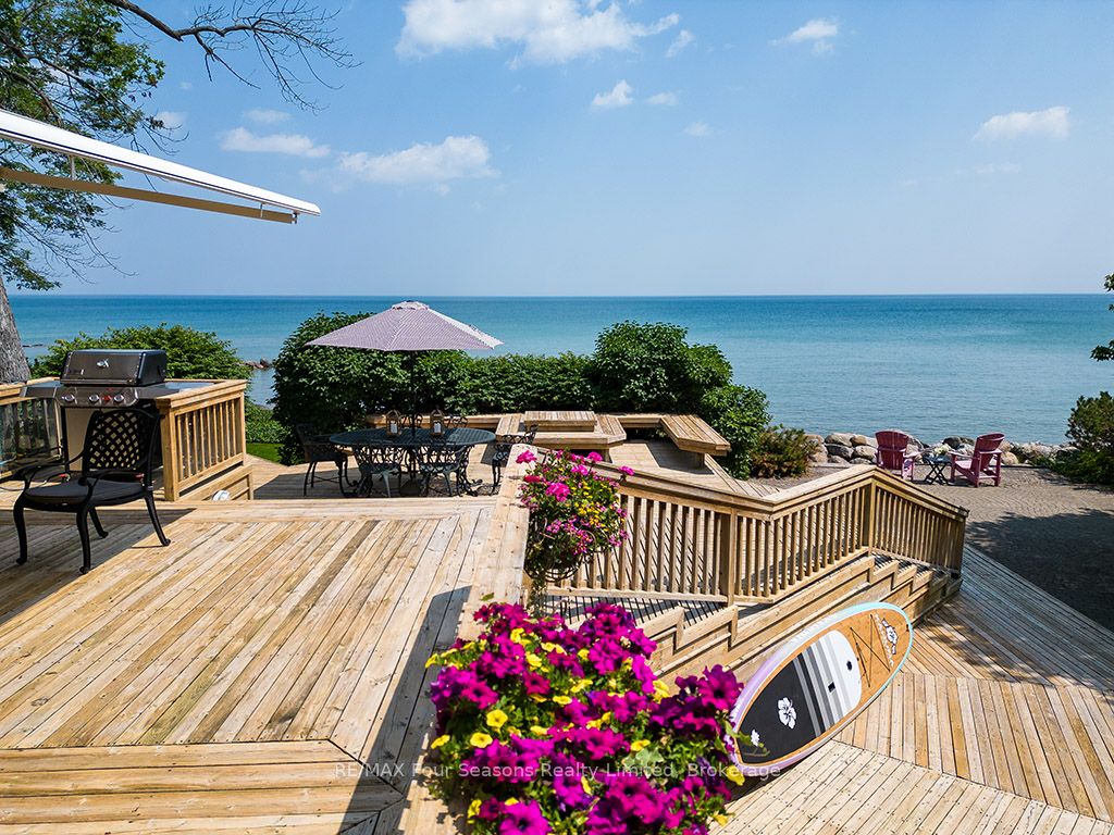 335 feet of exquisite waterfront nestled on the shores of Georgian Bay! With potential for a family compound this 4+1 bed, 4-bath home spans over 4,000 sq. ft. of beautifully appointed living space, with panoramic lake views and a resort-like setting. Arrive via a private gated circular drive and step into a secluded, park-like oasis featuring manicured grounds, a heated in-ground saltwater pool, with a stone English Potting Shed waiting for your ideas, a waters-edge gazebo, flagstone patios and tiered decks that lead you to the shoreline. Inside, Swedish Pine floors set a warm, elegant tone throughout. The main floor features a stunning living room with coffered ceilings, 2-sided gas fireplace, built-ins, and picture windows that perfectly frame the vistas. The layout flows from the living room into a formal dining room – maximizing light and views. The chef’s kitchen is a culinary dream, anchored by a 6-burner Viking gas range, granite countertops, a large island with prep sink, high-end appliances, and generous custom cabinetry. Upstairs, the light-filled family room with vaulted ceilings and skylights offers an inviting retreat, complemented by a cozy gas fireplace. The luxurious primary suite includes a spa-like ensuite and serene lake views, while three additional bedrooms with views of the water and two full baths accommodate family and guests in comfort. The expansive lower-level games and recreation room offers endless entertainment potential and two Murphy beds for overflow guests. New roof and skylights, both furnaces, pool and decking, windows, and renovated baths. Located just minutes to downtown shops and restaurants, and a short drive to Blue Mountain, the private ski clubs, Bruce Trail hiking, Cross Country trails, top golf courses, cycling routes, and more – making it a true 4-season playground for outdoor enthusiasts. A stunning blend of elegance, comfort, and recreation – this Georgian Bay waterfront gem is your ultimate lakeside sanctuary.