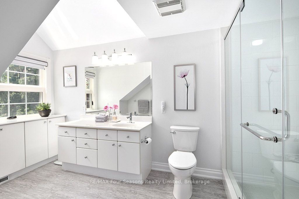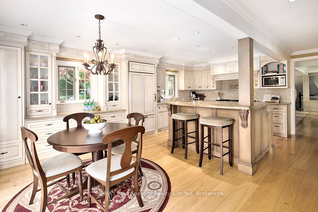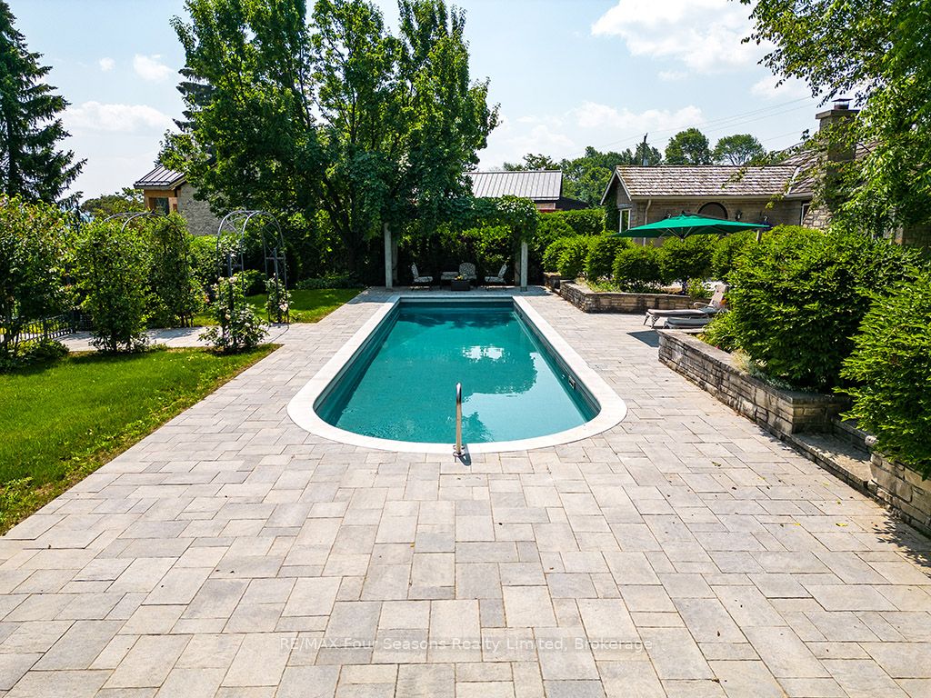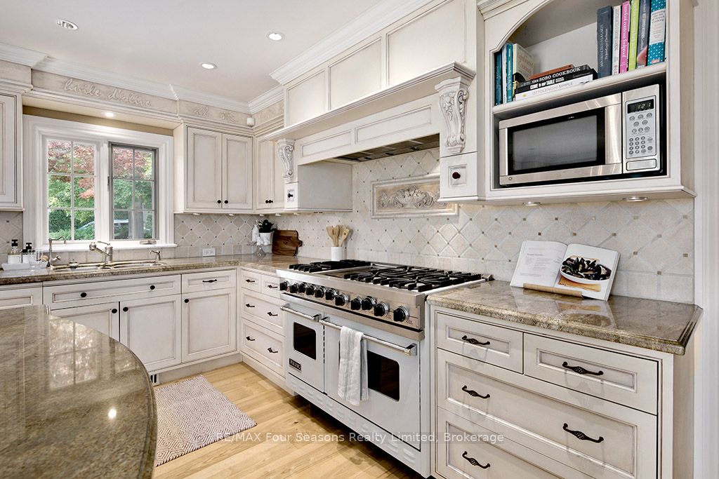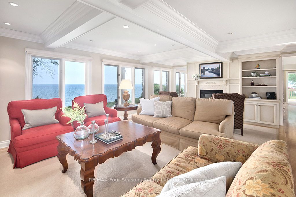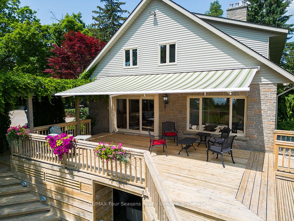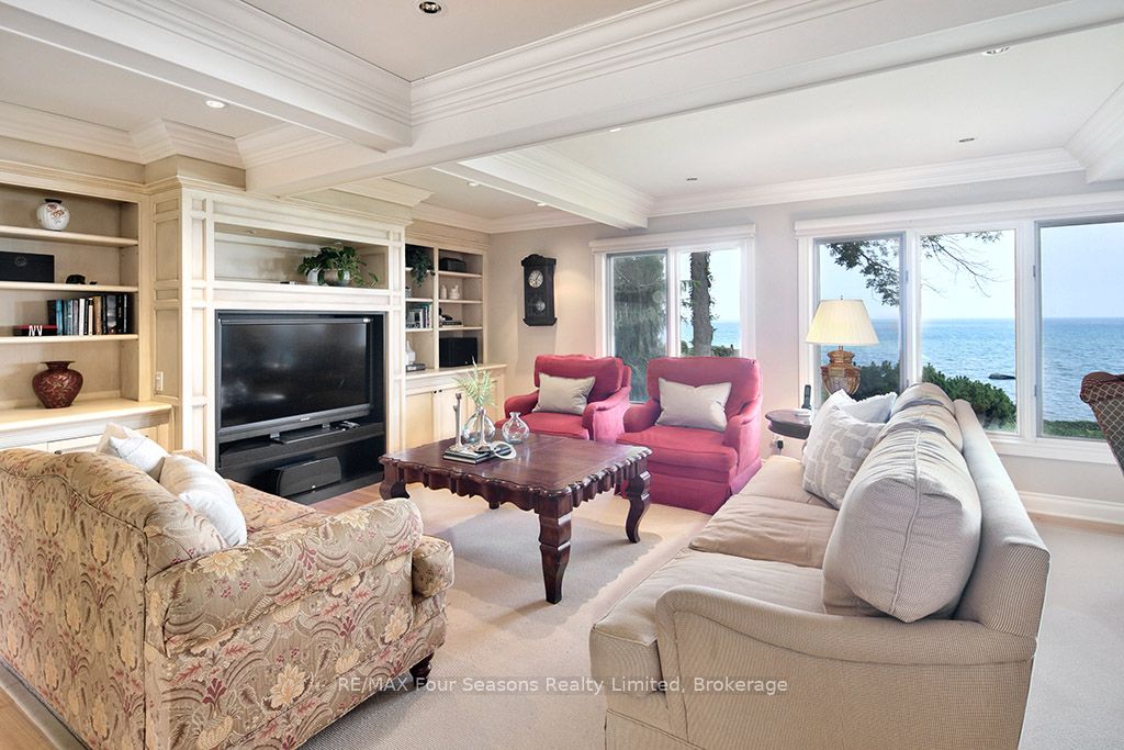 335 feet of exquisite waterfront nestled on the shores of Georgian Bay! With potential for a family compound this 4+1 bed, 4-bath home spans over 4,000 sq. ft. of beautifully appointed living space, with panoramic lake views and a resort-like setting. Arrive via a private gated circular drive and step into a secluded, park-like oasis featuring manicured grounds, a heated in-ground saltwater pool, with a stone English Potting Shed waiting for your ideas, a waters-edge gazebo, flagstone patios and tiered decks that lead you to the shoreline. Inside, Swedish Pine floors set a warm, elegant tone throughout. The main floor features a stunning living room with coffered ceilings, 2-sided gas fireplace, built-ins, and picture windows that perfectly frame the vistas. The layout flows from the living room into a formal dining room – maximizing light and views. The chef’s kitchen is a culinary dream, anchored by a 6-burner Viking gas range, granite countertops, a large island with prep sink, high-end appliances, and generous custom cabinetry. Upstairs, the light-filled family room with vaulted ceilings and skylights offers an inviting retreat, complemented by a cozy gas fireplace. The luxurious primary suite includes a spa-like ensuite and serene lake views, while three additional bedrooms with views of the water and two full baths accommodate family and guests in comfort. The expansive lower-level games and recreation room offers endless entertainment potential and two Murphy beds for overflow guests. New roof and skylights, both furnaces, pool and decking, windows, and renovated baths. Located just minutes to downtown shops and restaurants, and a short drive to Blue Mountain, the private ski clubs, Bruce Trail hiking, Cross Country trails, top golf courses, cycling routes, and more – making it a true 4-season playground for outdoor enthusiasts. A stunning blend of elegance, comfort, and recreation – this Georgian Bay waterfront gem is your ultimate lakeside sanctuary.